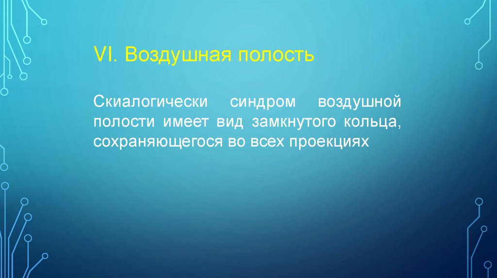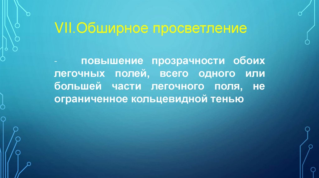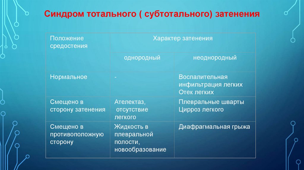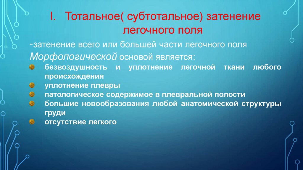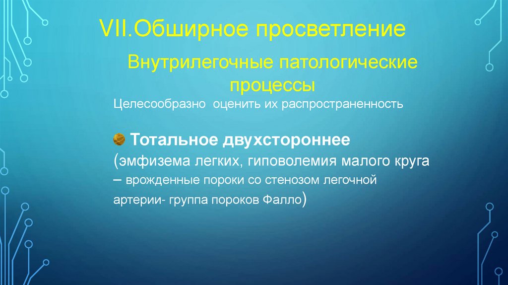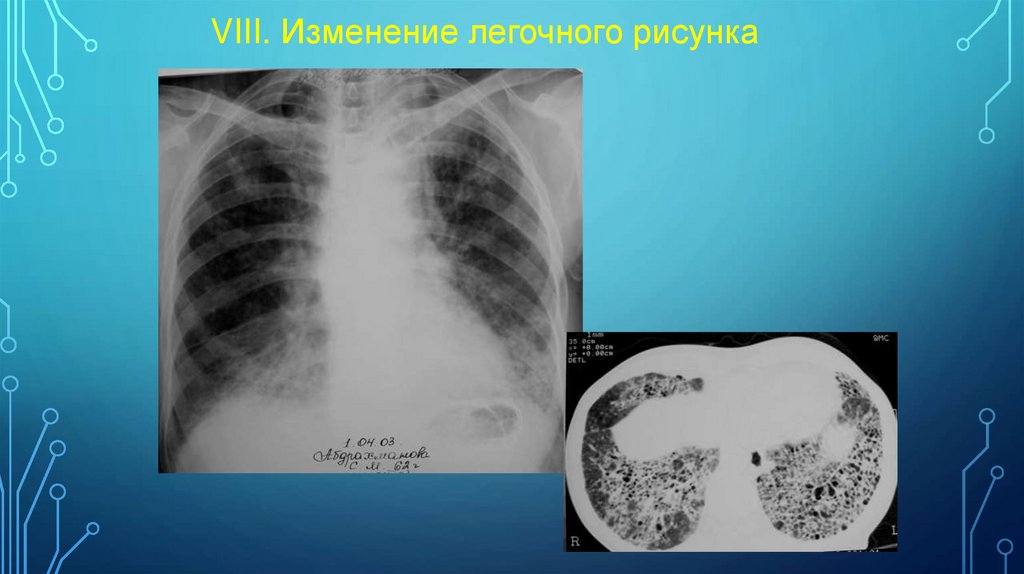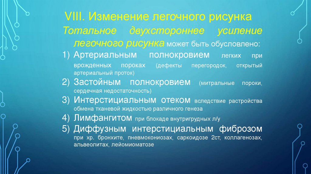 VIII. Изменение легочного рисункаТотальное одностороннее обеднение
