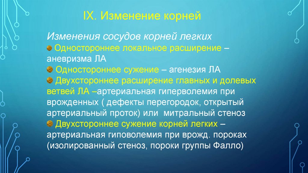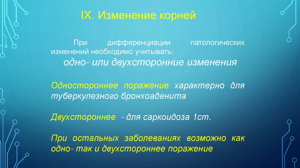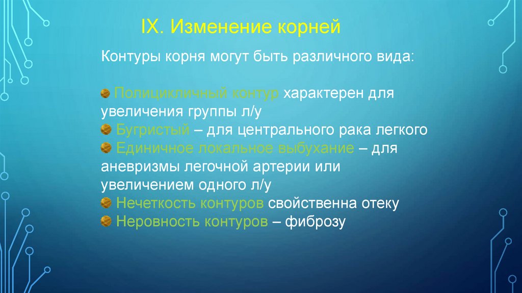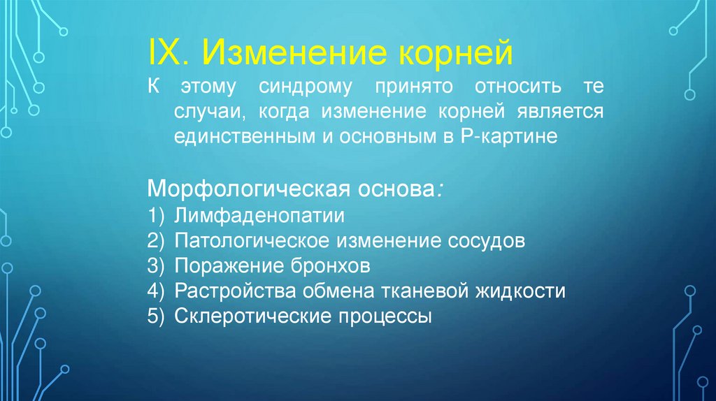 IX. Изменение корнейОдностороннее расширение правого корня с бугристым контуром