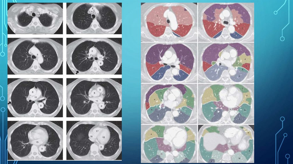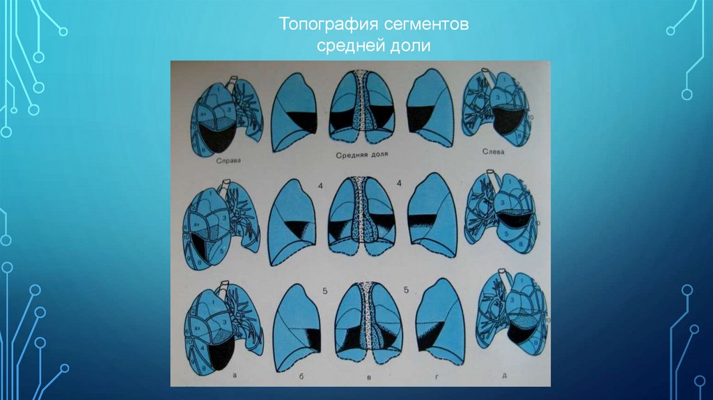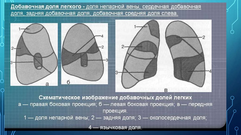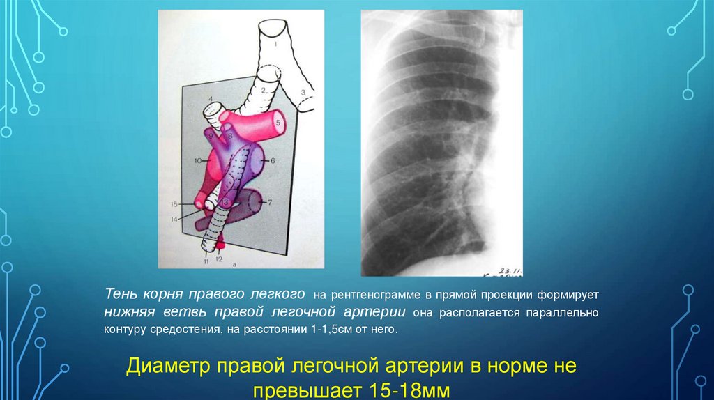 артерии нижней доли правого легкого 14 Боковые реберно-диафрагмальные углы 15 тень