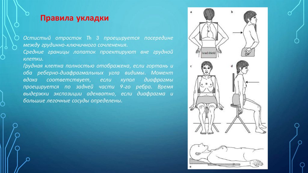 Правила укладкиОстистый отросток Th 3 проецируется посередине