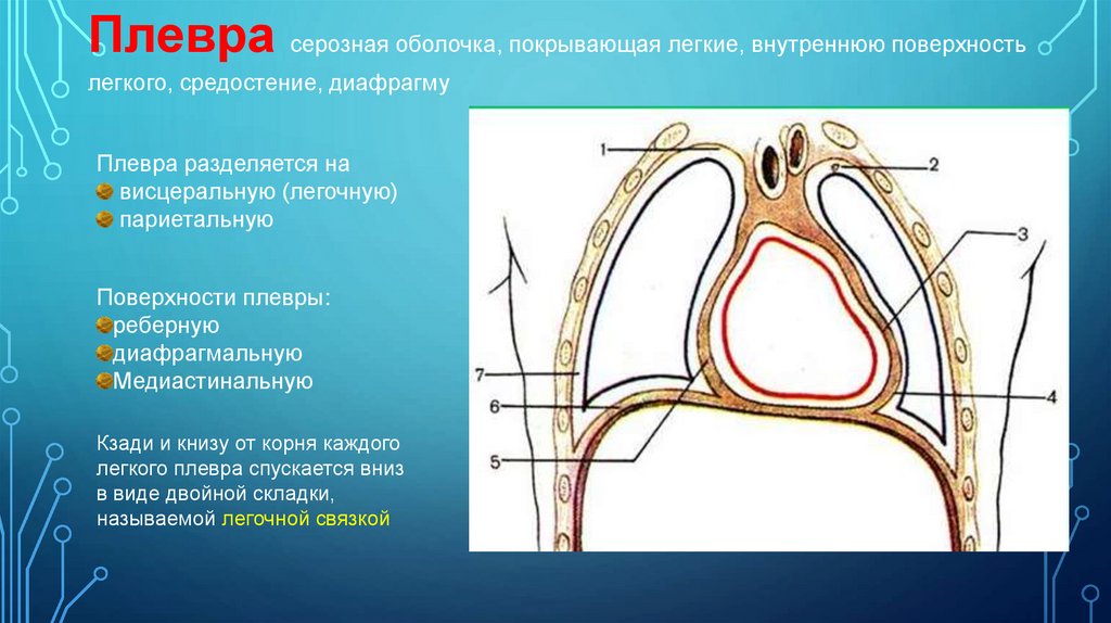 артерия 8 Подмышечный сгиб 9 Лопатка 10 Правый задний реберно-диафрагмальный угол 11 Левый задний
