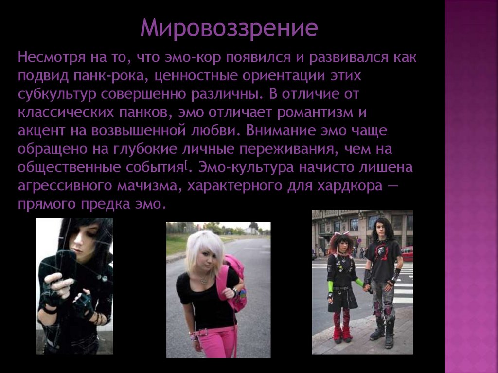 МировоззрениеНесмотря на то, что эмо-кор появился и развивался как