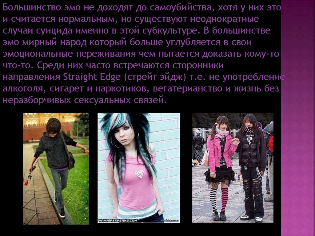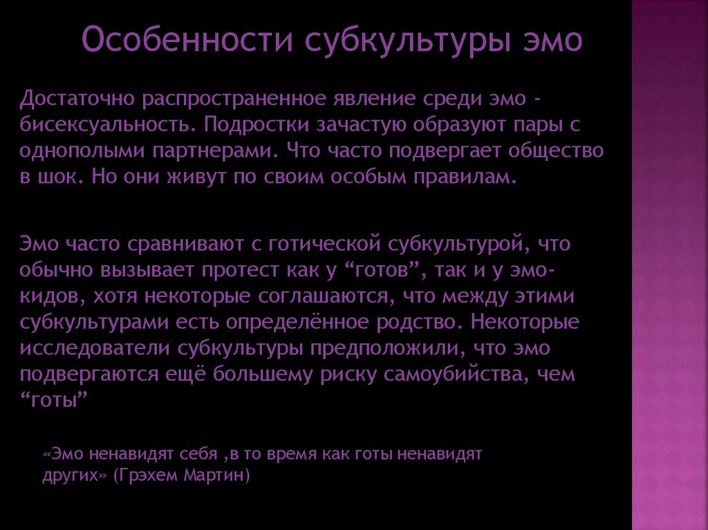 Особенности субкультуры эмоДостаточно распространенное явление среди эмо бисексуальность. Подростки зачастую образуют пары с