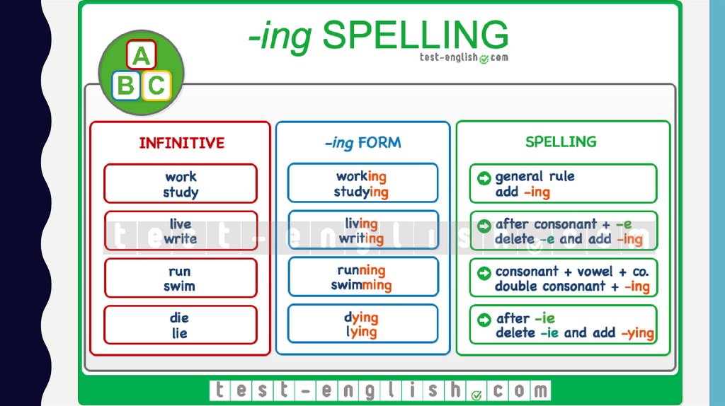 • Для того, чтобы поставить глагол в форму Future Continuous, нуженспомогательный глагол to be в будущем времени и причастие настоящего