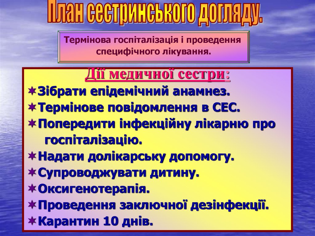 Дитині 10 місяців. Госпіталізована з діагнозомГРВІ. Стан важкий, температура тіла 39,5С,