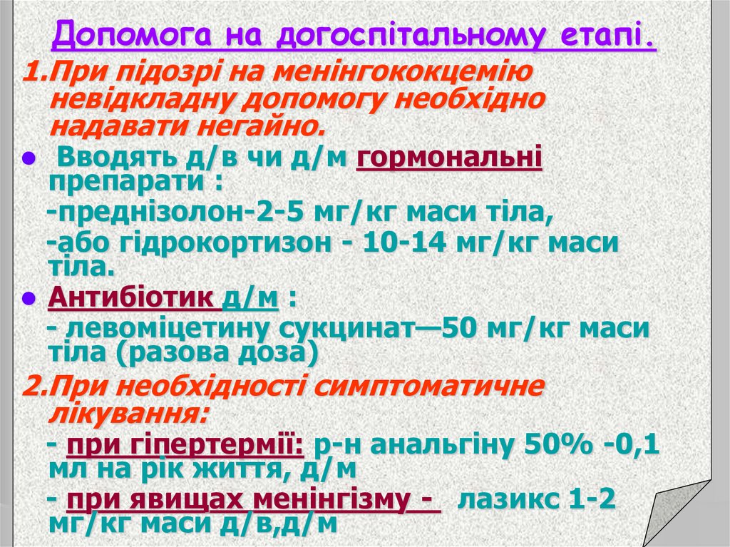 Допомога на догоспітальному етапі.1.При підозрі на менінгококцемію