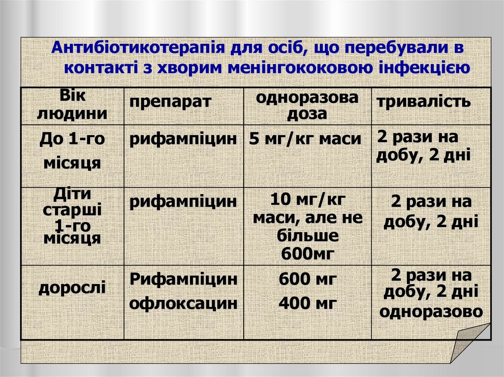Антибіотикотерапія для осіб, що перебували вконтакті з хворим менінгококовою інфекцією