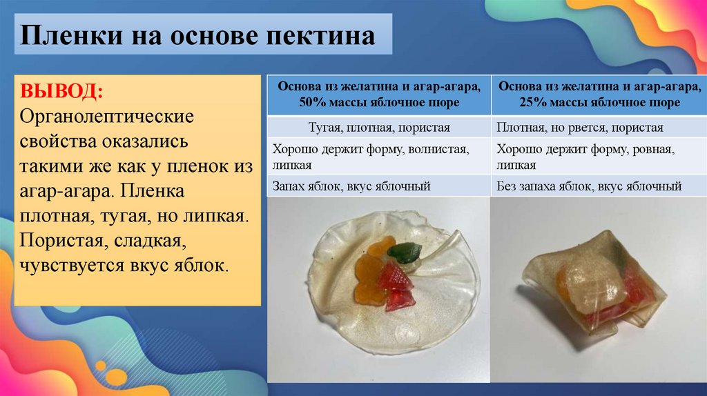 Пленки на основе пектинаВЫВОД: