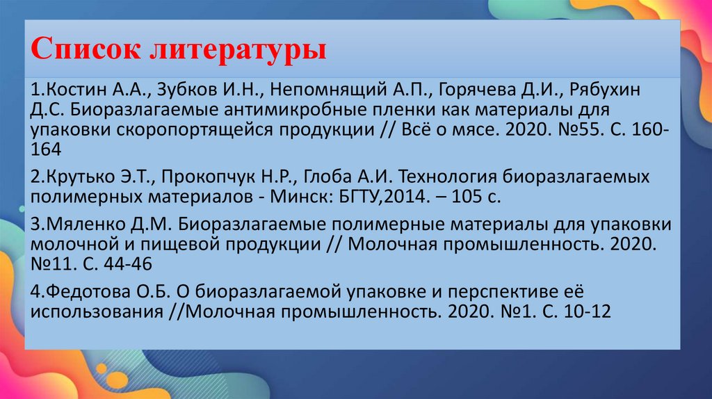 3.Мяленко Д.М. Биоразлагаемые полимерные материалы для упаковки