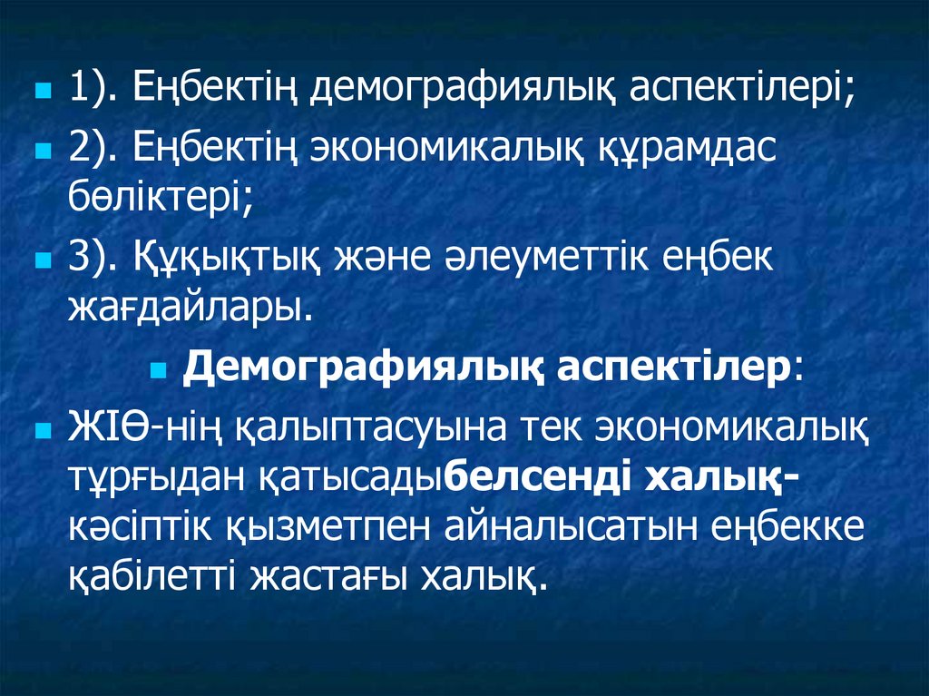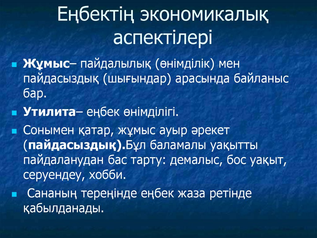 Жұмыс күші – адамның еңбекке қабілеттілігі. Оны