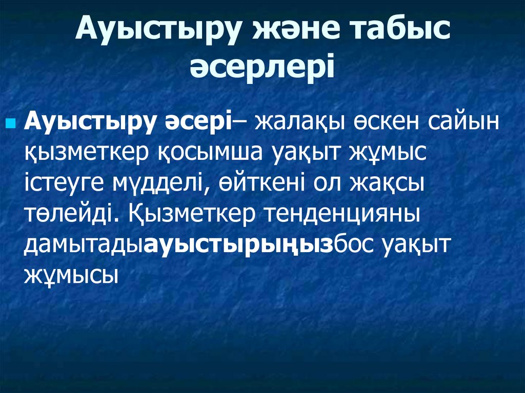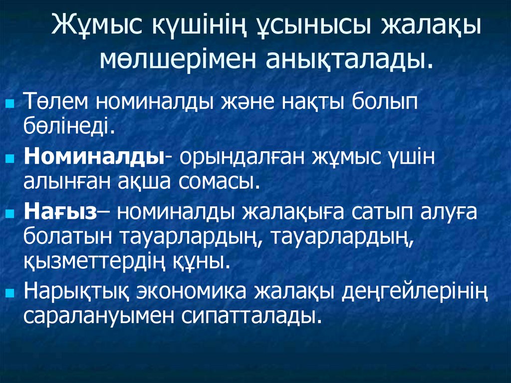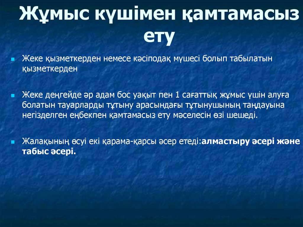 Жұмыс күшінің ұсынысы жалақымөлшерімен анықталады.