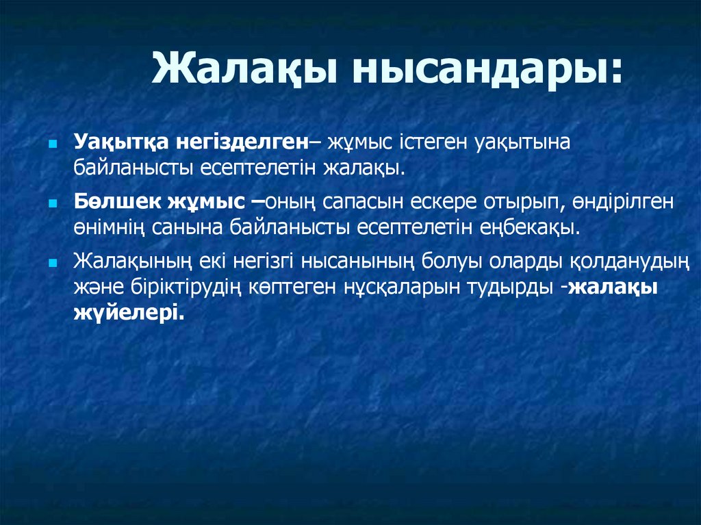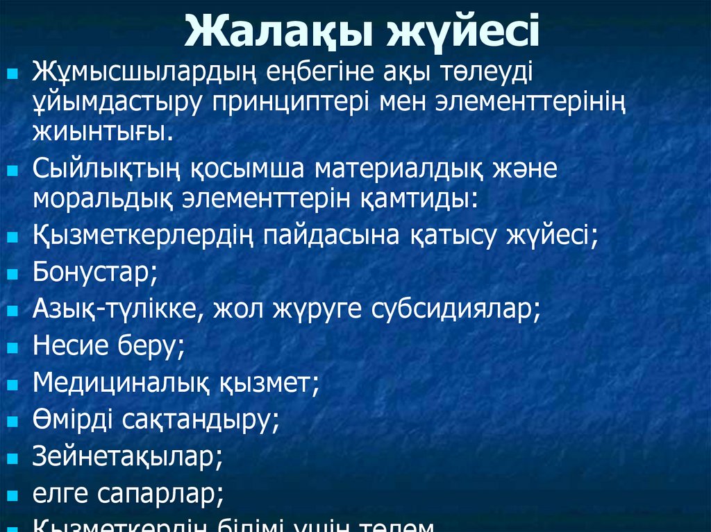 Жалақы жүйесіЖұмысшылардың еңбегіне ақы төлеуді