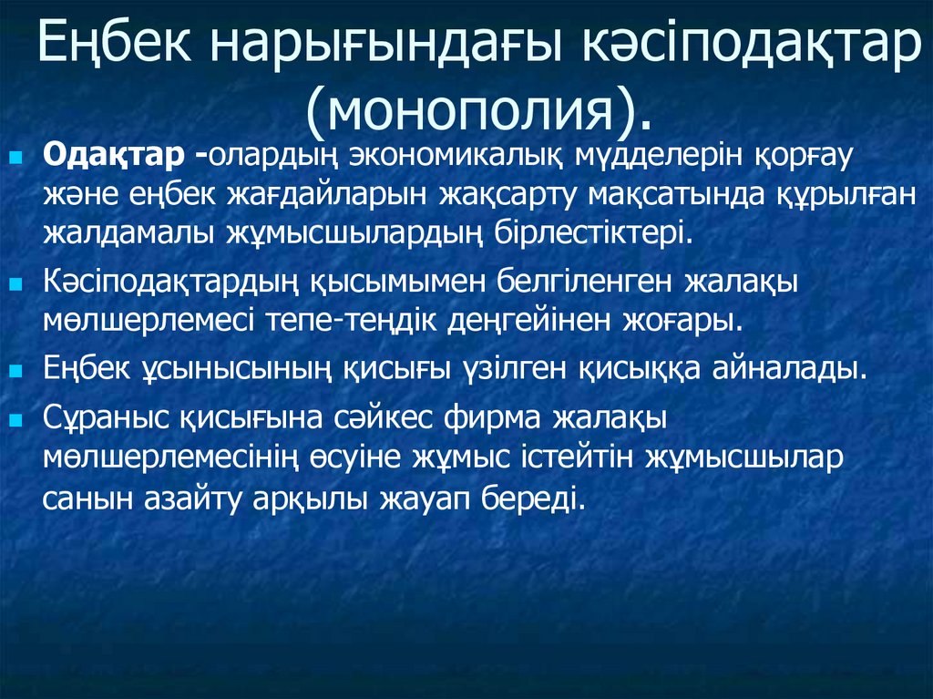 Еңбек нарығындағы кәсіподақтар(монополия).