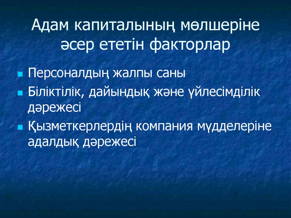 Адам капиталының мөлшерінеәсер ететін факторлар