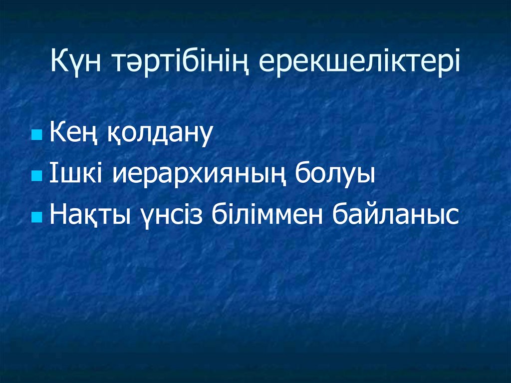 Күн тәртібінің ерекшеліктеріКең қолдану
