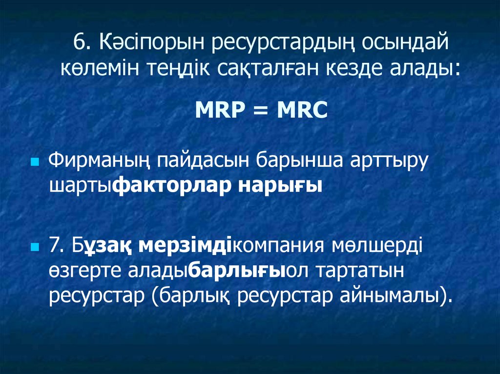 6. Кәсіпорын ресурстардың осындайкөлемін теңдік сақталған кезде алады: