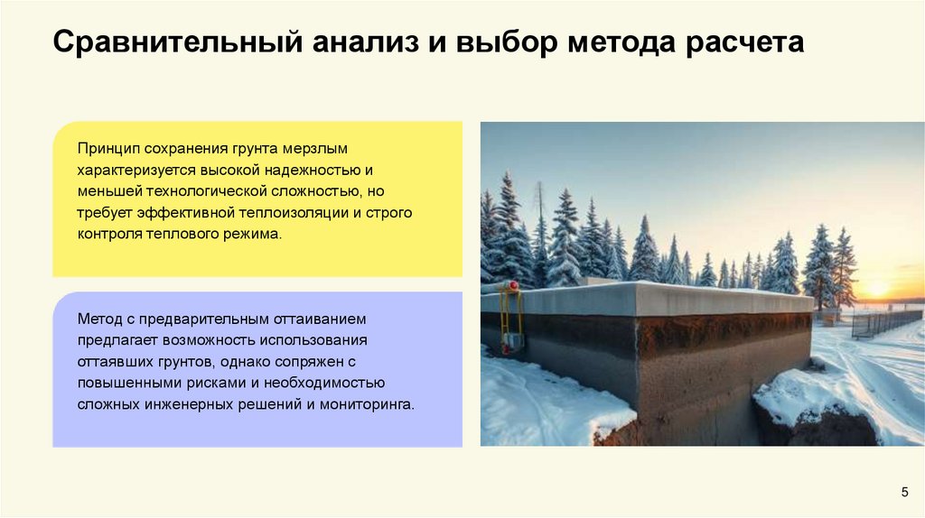 Сравнительный анализ и выбор метода расчетаПринцип сохранения грунта мерзлым