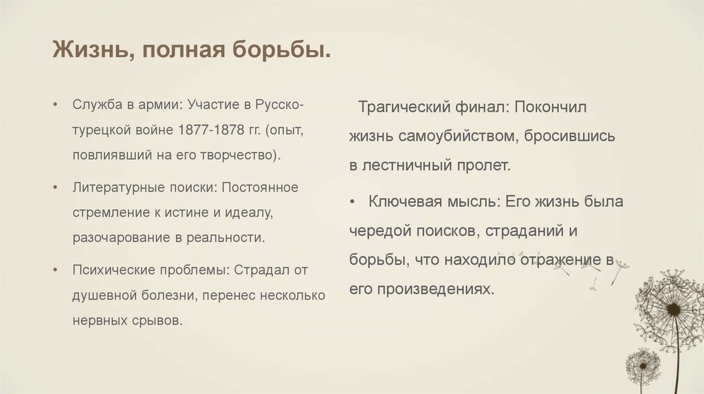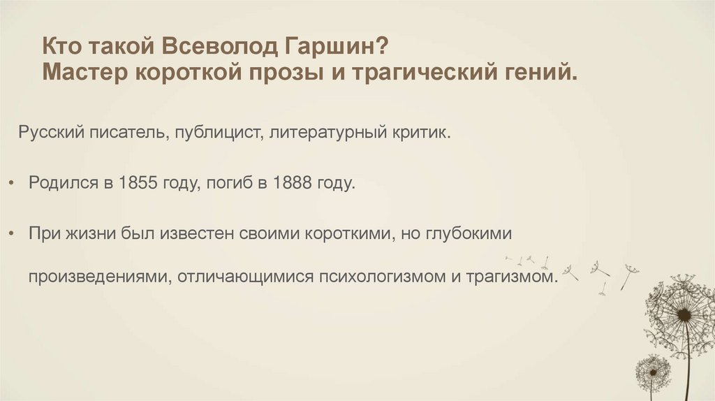 1. "Всеволод Михайлович Гаршин — одна из самых трагических фигур в