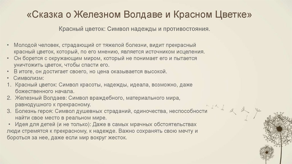 «Сказка о Железном Волдаве и Красном Цветке»Красный цветок: Символ надежды и противостояния.