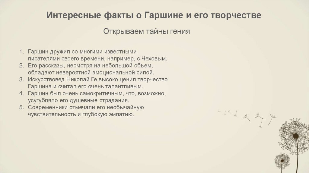 Интересные факты о Гаршине и его творчествеОткрываем тайны гения
