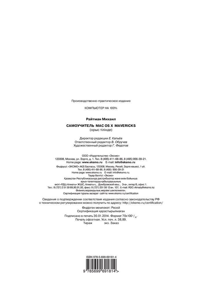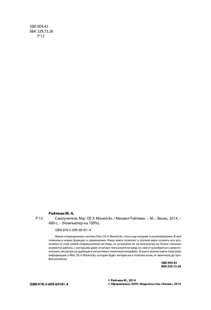 Самоучитель Mac OS X Mavericks / Михаил Райтман. – М. : Эксмо, 2014. –