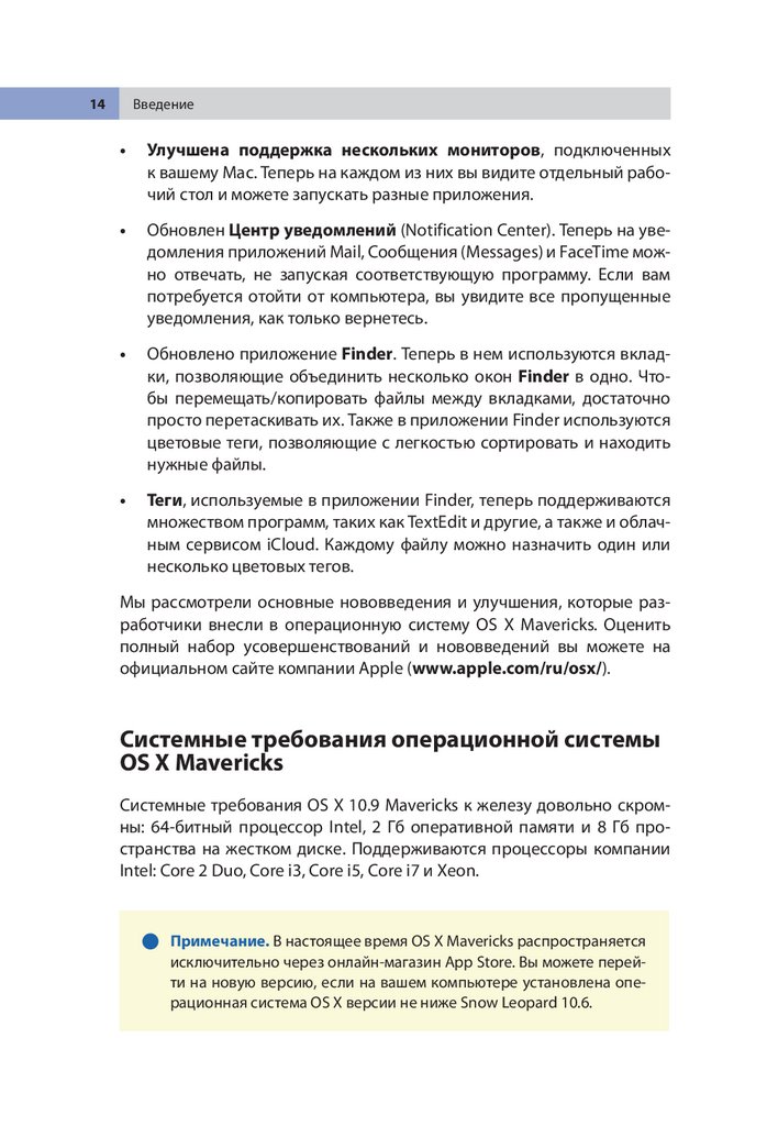 Системные требования операционной системы OS Х Mavericks . . . . . . 14