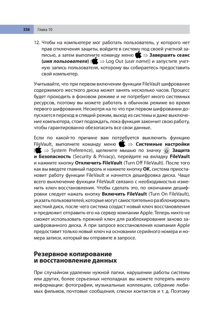 Функция FileVault2, 353