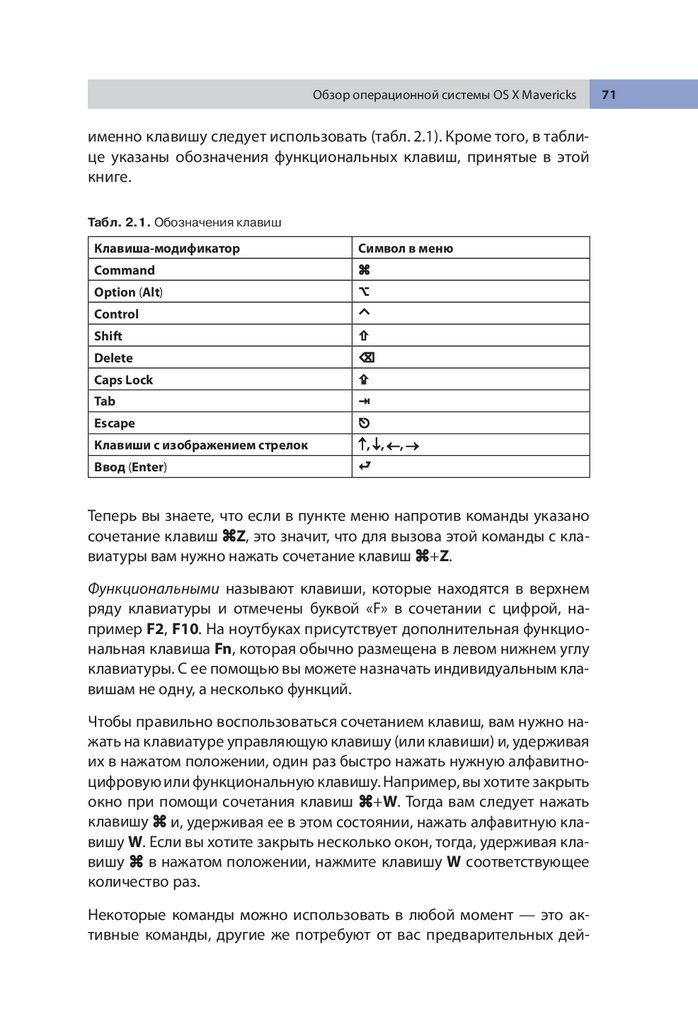 Обозначения и сочетания клавиш в операционной системе OS X. . . . . 69