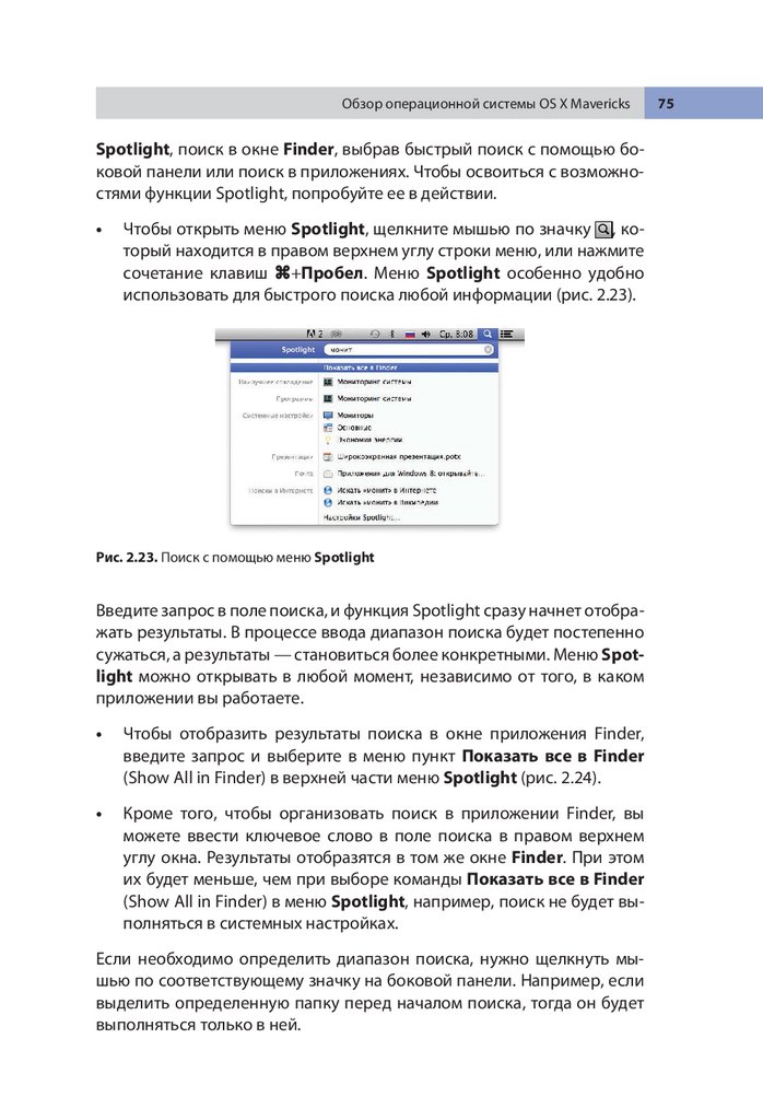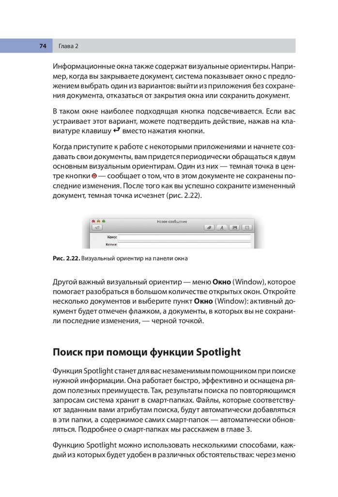 Поиск при помощи функции Spotlight . . . . . . . . . . . . . . . . . . . . . . . 74