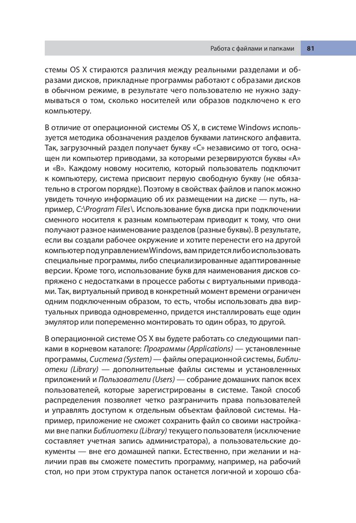 Структура папок в операционной системе OS X. . . . . . . . . . . . . . . . . 80