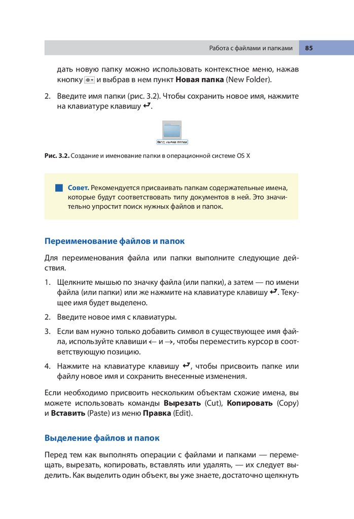Переименование файлов и папок . . . . . . . . . . . . . . . . . . . . . . . 85