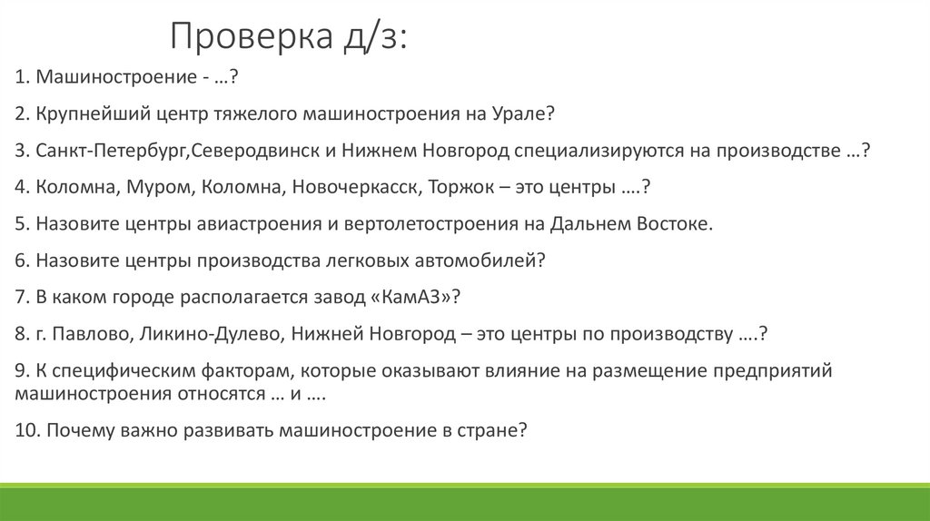 1. Машиностроение - …?2. Крупнейший центр тяжелого машиностроения на Урале?