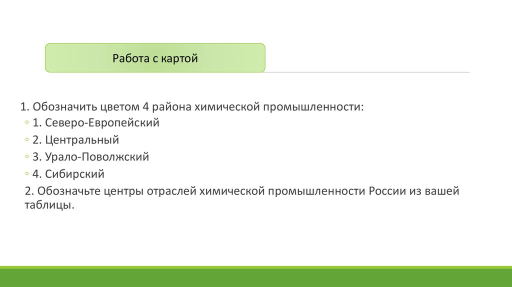 Работа с картой1. Обозначить цветом 4 района химической промышленности: