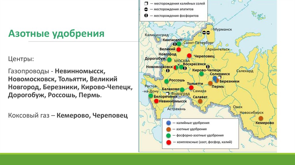 2. Обозначьте центры отраслей химической промышленности России из вашей