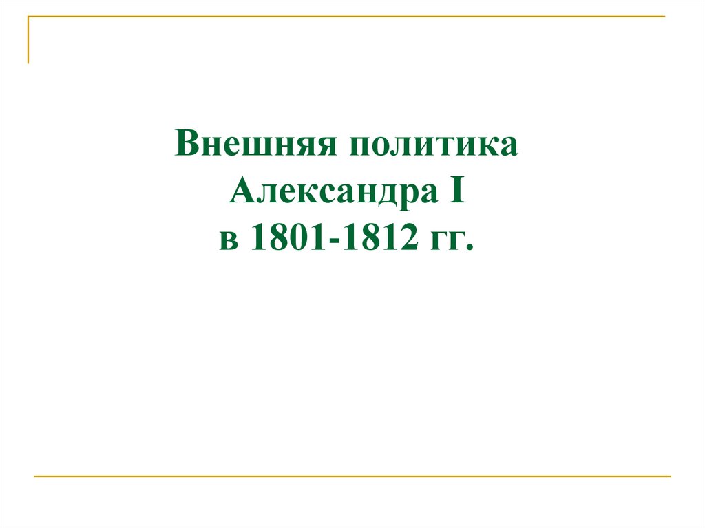 1. Внешняя политика Александра I в 1801-1812 гг.