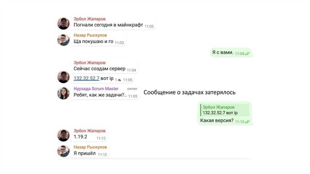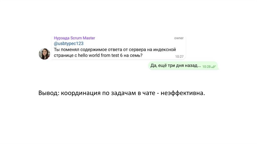 Вывод: координация по задачам в чате - неэффективна.8. Решение