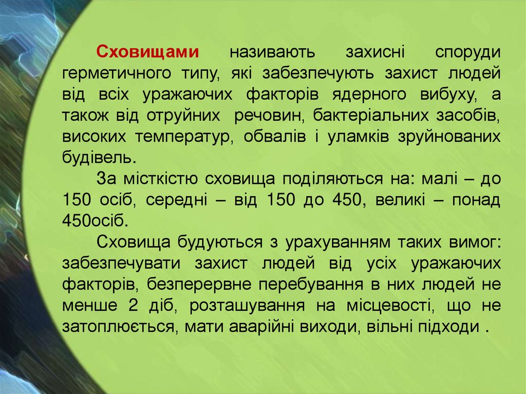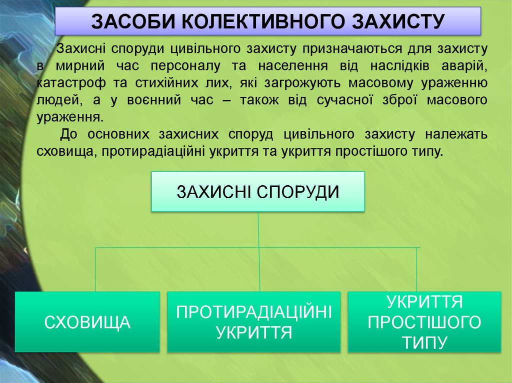 ЗАСОБИ КОЛЕКТИВНОГО ЗАХИСТУЗахисні споруди цивільного захисту призначаються для захисту