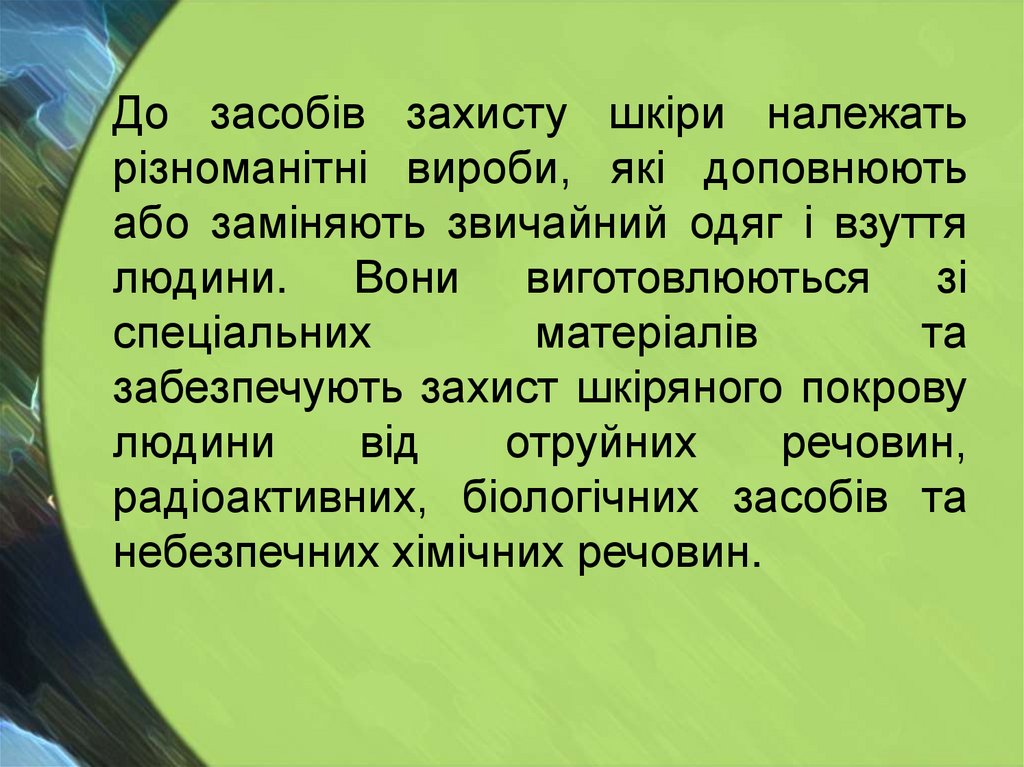 До засобів захисту шкіри належатьрізноманітні вироби, які доповнюють