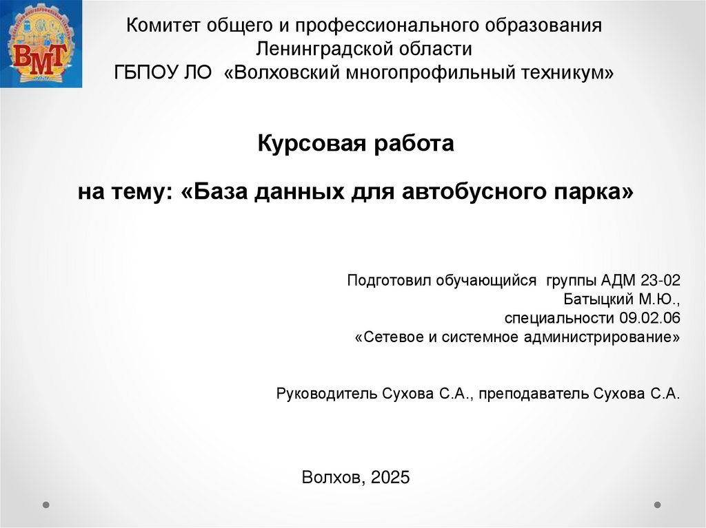 ГБПОУ ЛО «Волховский многопрофильный техникум»