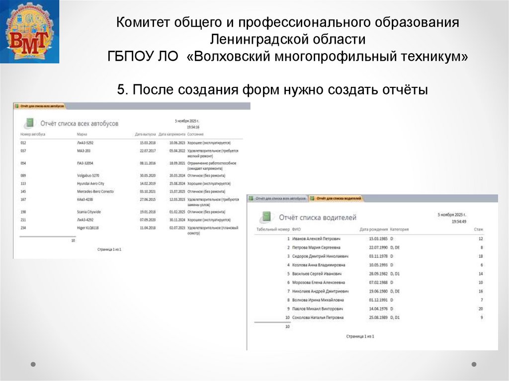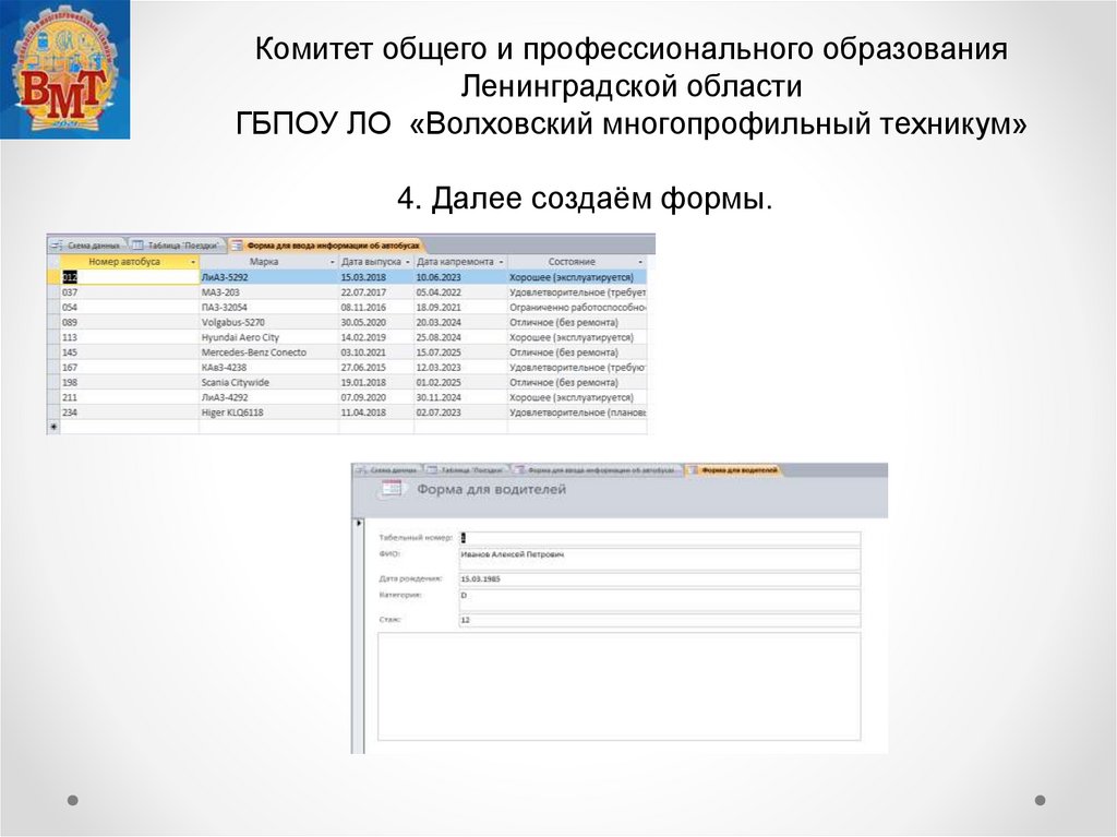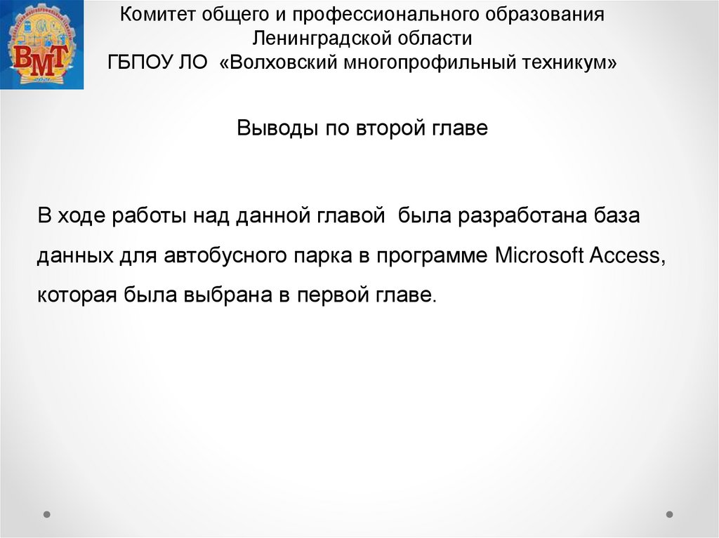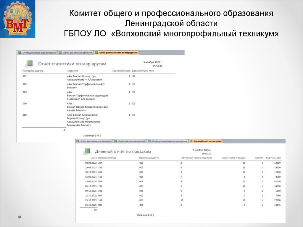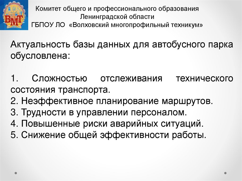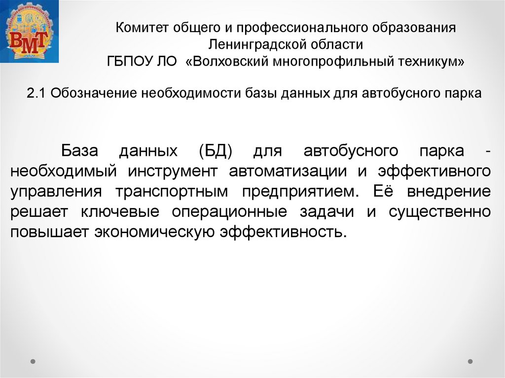 Подводя итоги, цель базы данных для автобусного парка централизованное хранение, систематизация и эффективное