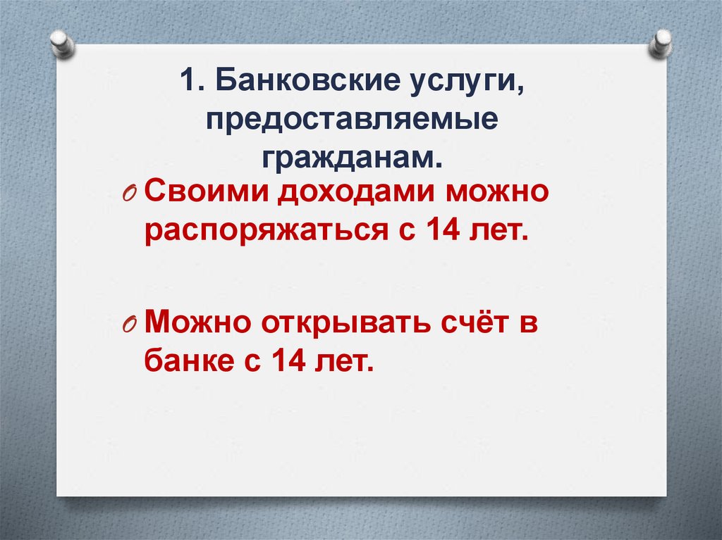 1. Урок по обществознанию «Банковские услуги» 8 класс