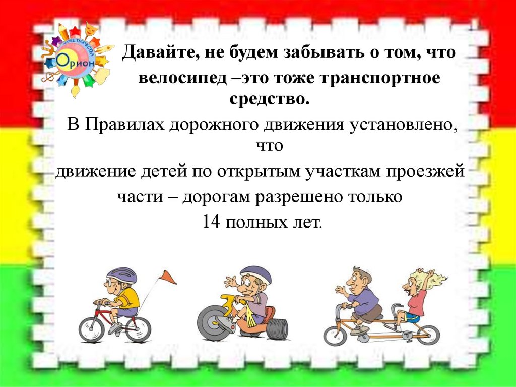 Давайте, не будем забывать о том, чтовелосипед –это тоже транспортное