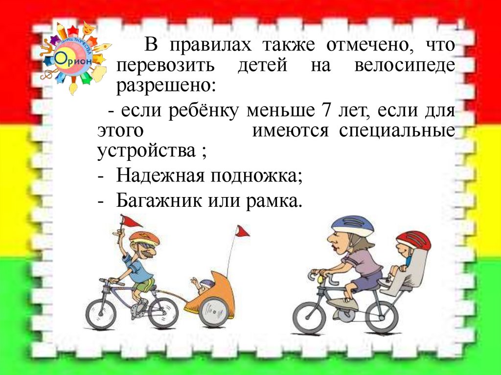 В правилах также отмечено, чтоперевозить детей на велосипеде