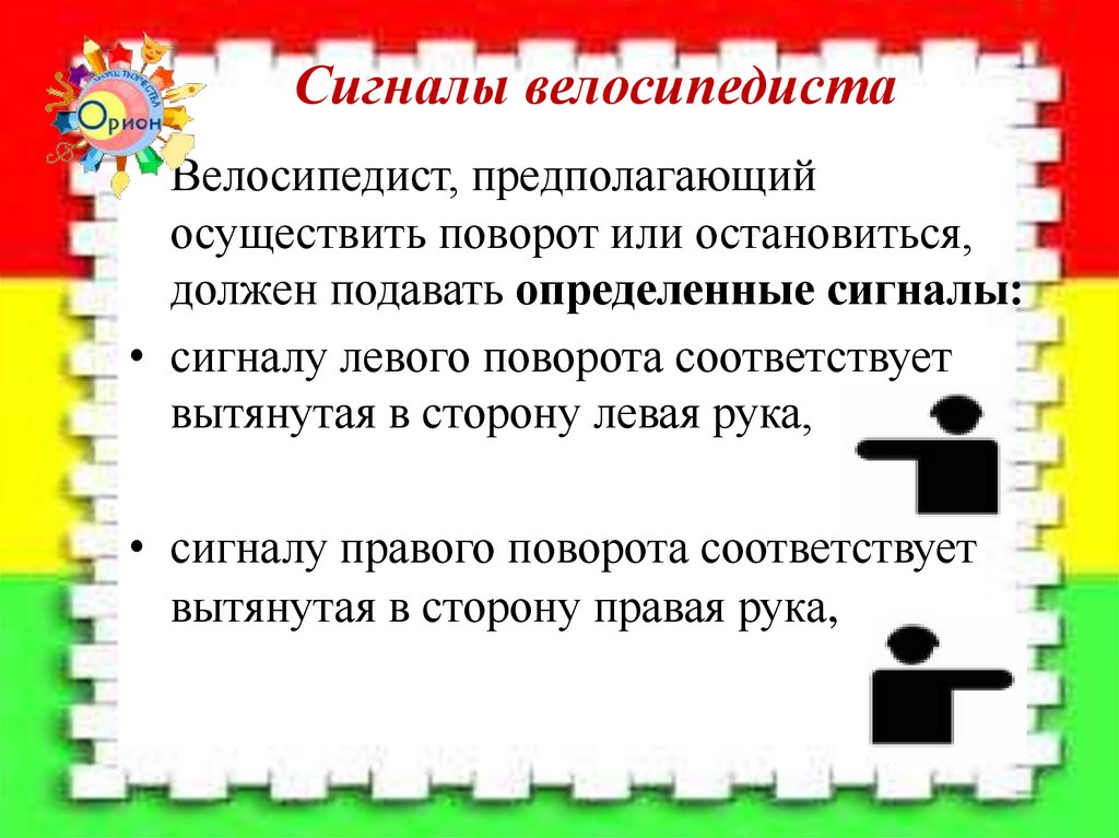 Сигналы велосипедистасигнал торможения (стоп) подается