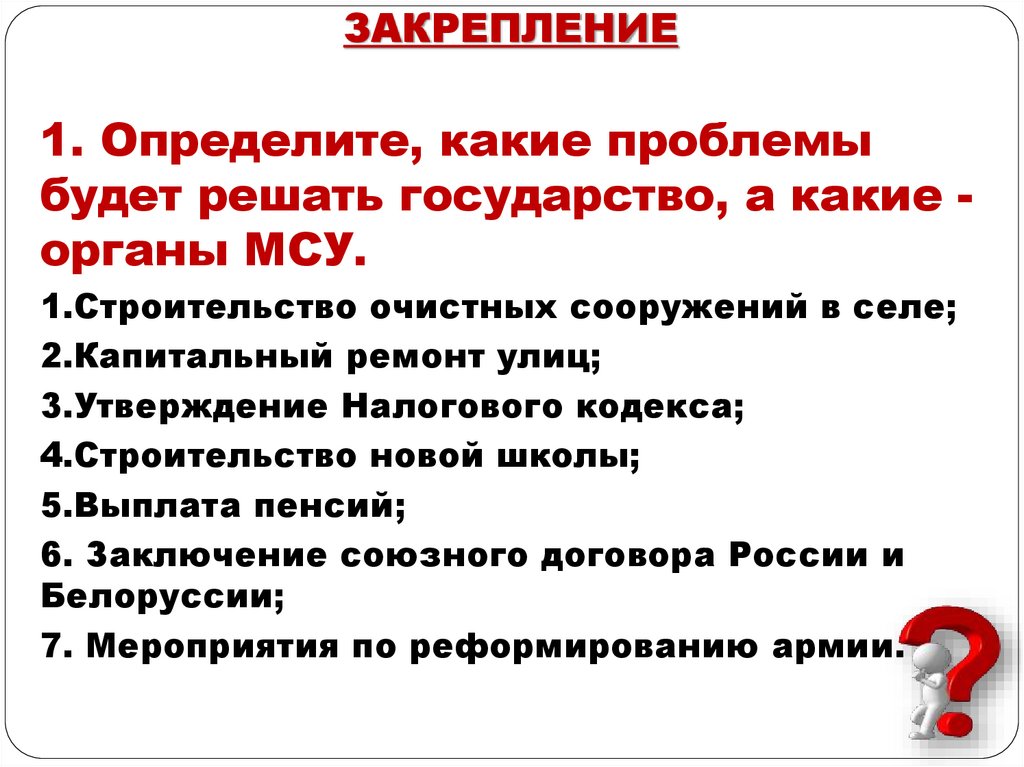 ЗАКРЕПЛЕНИЕ1. Определите, какие проблемы