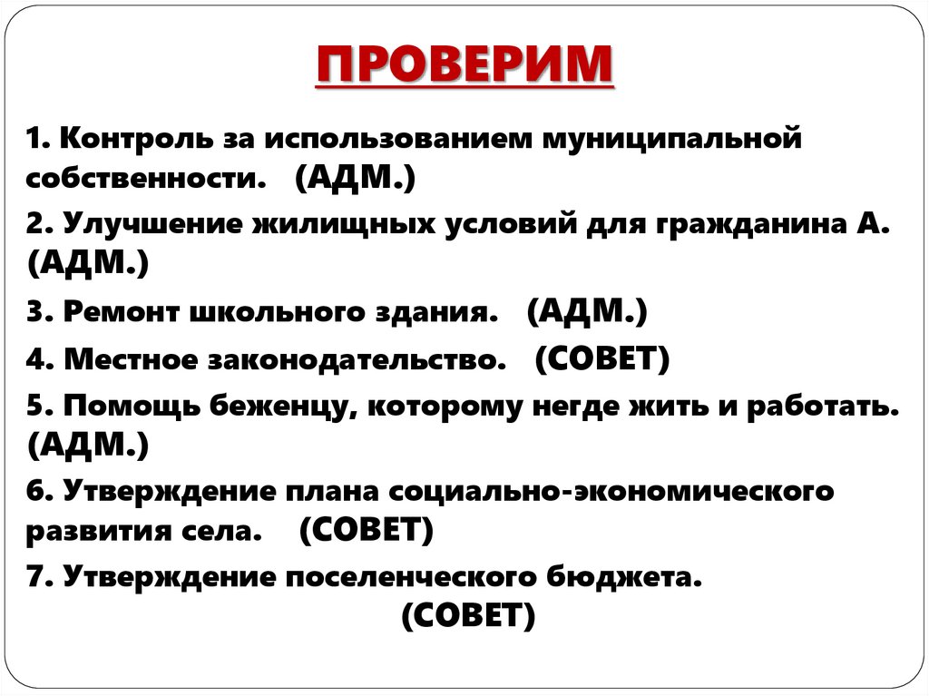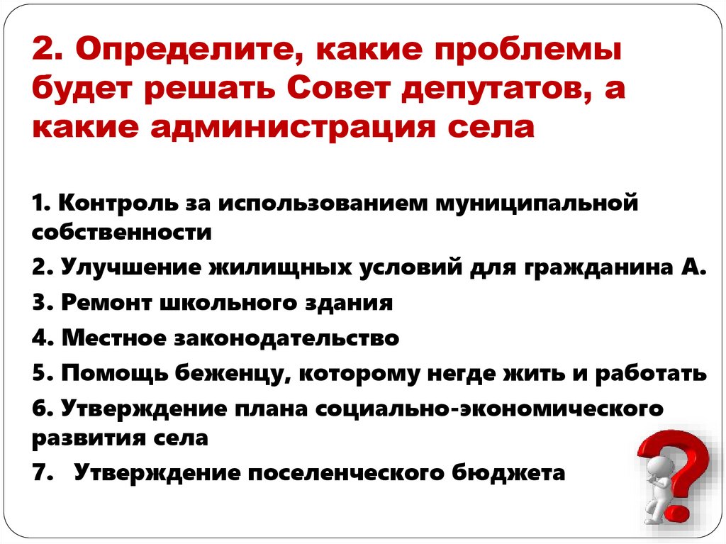 2. Определите, какие проблемыбудет решать Совет депутатов, а