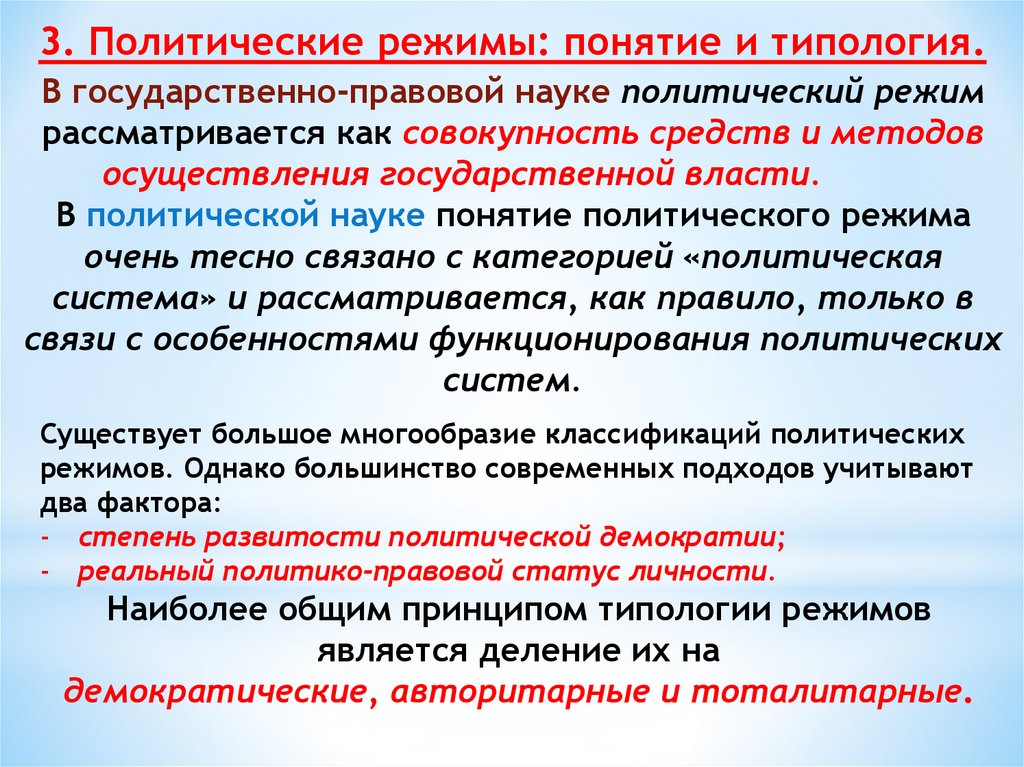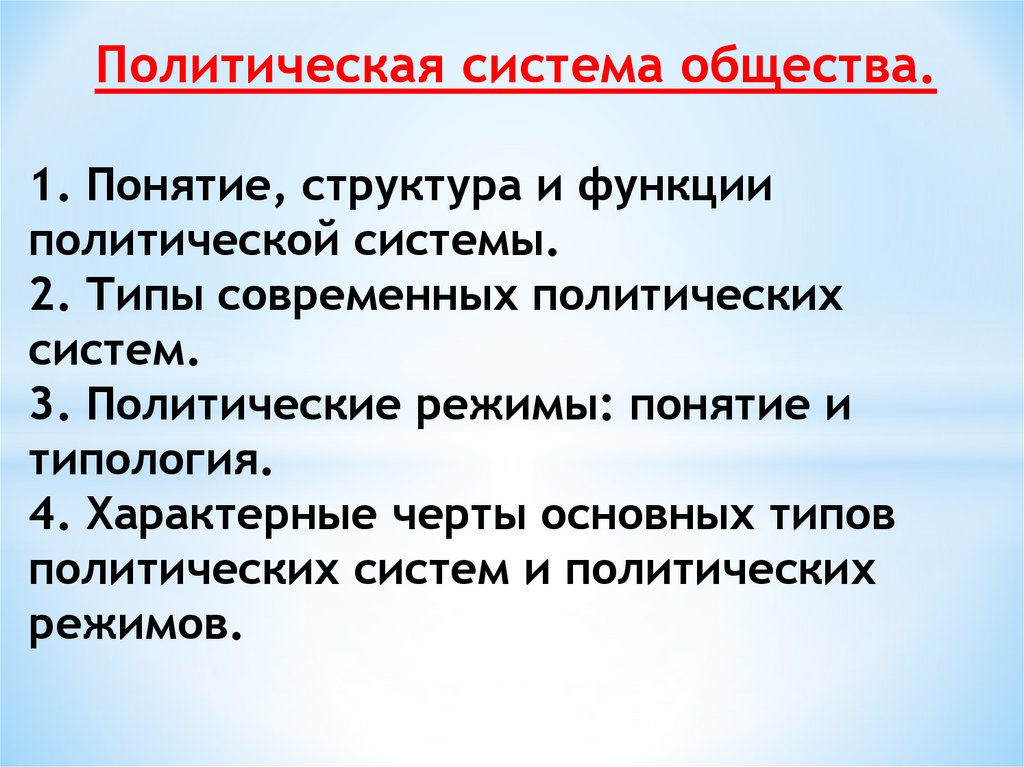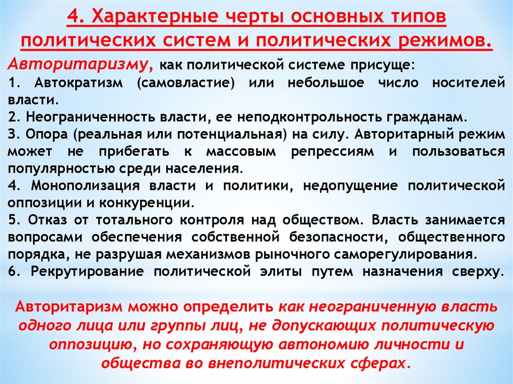 4. Характерные черты основных типовполитических систем и политических режимов.