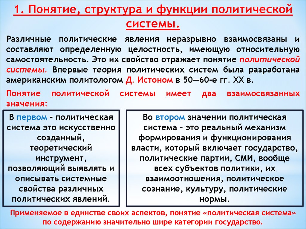 Применяемое в единстве своих аспектов, понятие «политическая система»