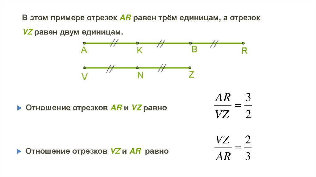 В этом примере отрезок AR равен трём единицам, а отрезокVZ равен двум единицам.