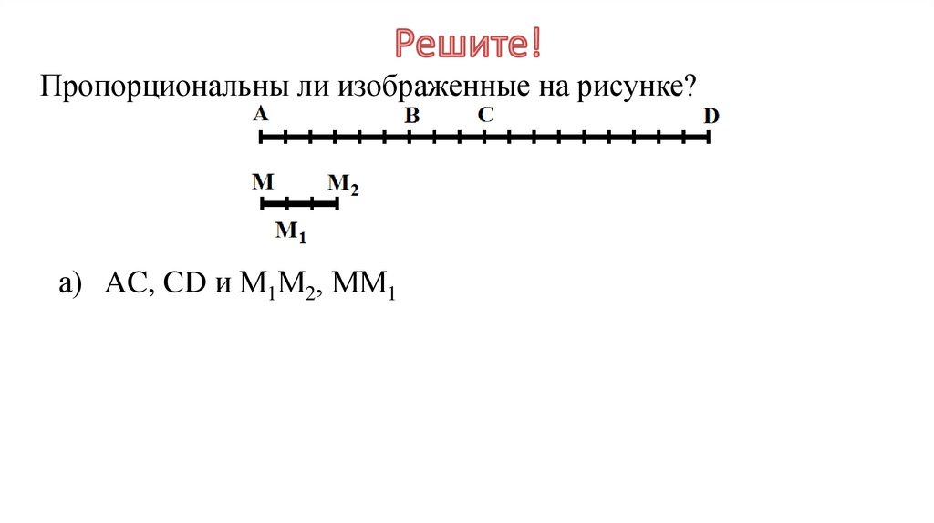 Пропорциональны ли изображенные на рисунке?а) AC, CD и М1М2, ММ1